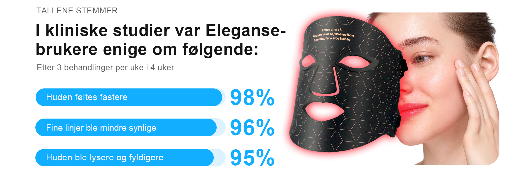 Eleganse LED-masken er din daglige hudfornyer og pålitelige skjønnhetspartner, som bringer profesjonell hudpleie rett hjem til deg.